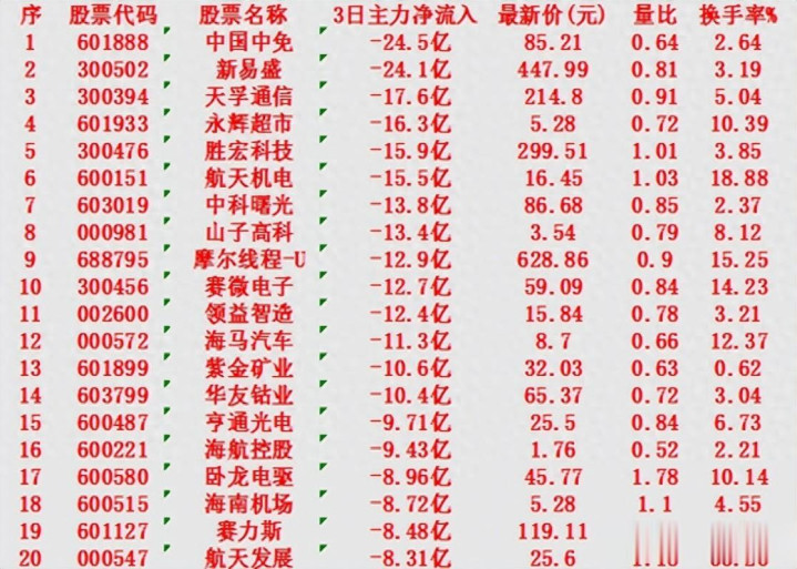 前3天主力净流出的名单汇总:可靠的股票配资平台